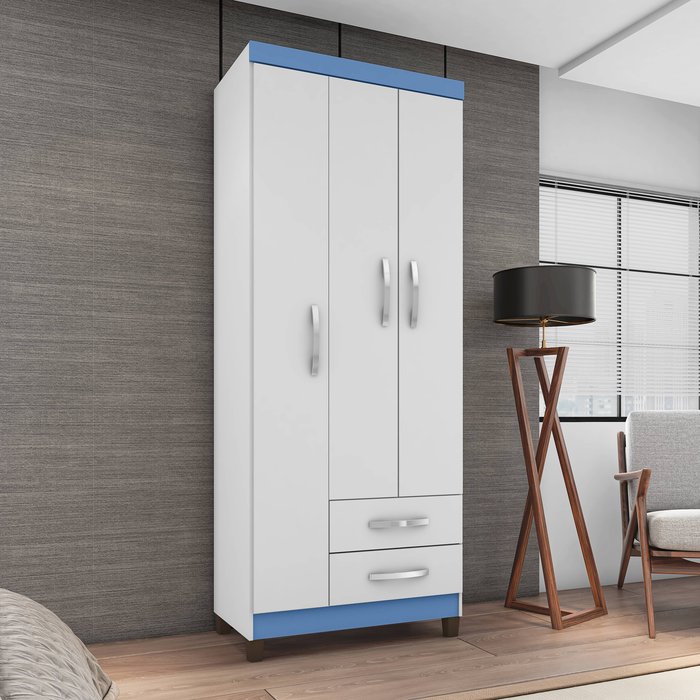 Guarda-Roupa Solteiro Boston 3 Portas Branco/Azul Facilite House