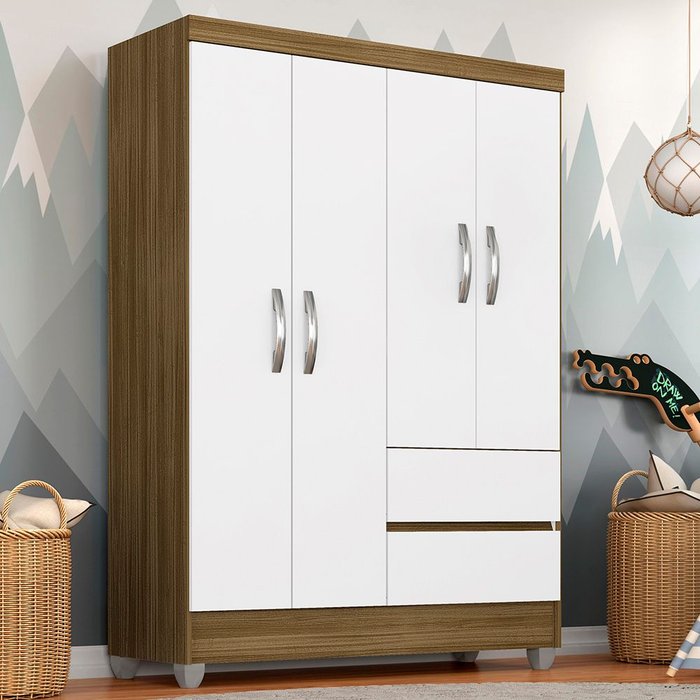 Guarda Roupa Solteiro Bruna 4 Portas Boreal/ Branco - Moveis Arapongas Boreal/branco