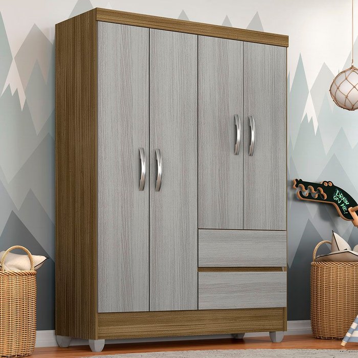 O Guarda-roupa Bruna 4 Portas 2 Gavetas, é um roupeiro moderno com gavetas, conta com puxadores em PVC. Ele tem um bonito acabamento com Pintura Texturizada, muito resistentes que dão maior destaque à cor.