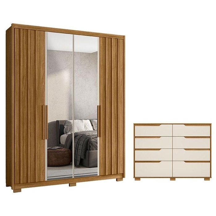 Guarda Roupa Solteiro Califórnia E Cômoda Georgia Freijó Off White Com Espelho - Moval