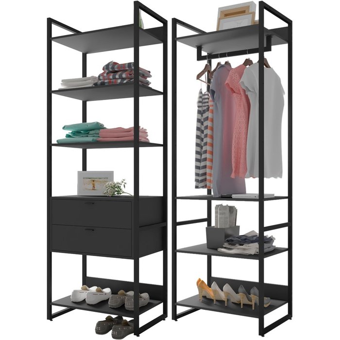 Guarda Roupa Solteiro Closet 2 Módulos Indy F02 Preto Texturizado - Mpozenato