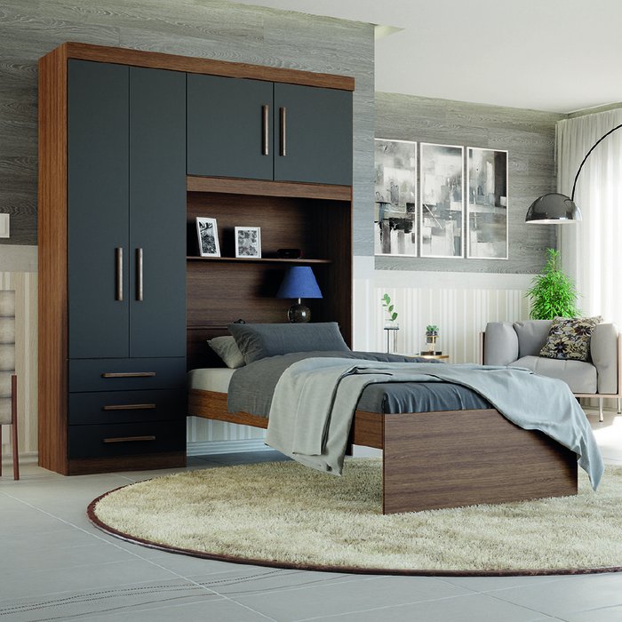 Guarda Roupa Solteiro com Cama e Baú 4 Portas 3 Gavetas Advantage Batrol