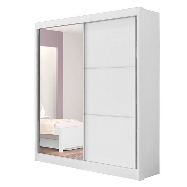 Guarda Roupa Solteiro Com Espelho 2 Portas 3 Gavetas Athenas D'Doro Móveis Branco Branco