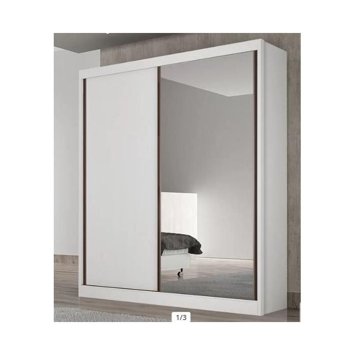 Guarda Roupa Solteiro com Espelho 2 Portas 3 Gavetas Virtus - Branco - Móveis Novo Horizonte