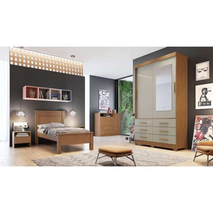 Guarda Roupa Solteiro com Espelho 2 Portas 6 Gavetas - Buriti-Cumaru/Fendi - Móveis Novo Horizonte O Guarda Roupa Buriti vai proporcionar um ambiente aconchegante mantendo um visual sofisticado e funcional. Composto por peças de extrema qualidade e com excelente espaço interno bem distribuídos, oferecendo máxima organização de forma prática. Fabricado em 100% MDP, 2 portas de correr, possui 6 gavetas com corrediças telescópicas, puxadores com acabamento amadeirado e cabideiros em alumínio. Amplo espaço interno. Aproveite! Faz parte do anúncio: 1 Guarda Roupa Solteiro com Espelho 2 Portas 6 Gavetas - Buriti - Móveis Novo Horizonte Obs. Objetos de decoração não inclusos Particularidades do guarda-roupa: Características: - 100% MDP; - Puxadores com acabamento amadeirado; - 6 Gavetas com corrediças telescópicas; - Espelho parafusado; - Trilho inferior em alumínio; - Roldanas com rolamento; - Cabideiros em alumínio; - Pés inclusos; Dimensões: Altura: 2,05 metros Largura: 1,20 metros Profundidade: 46,5 centímetros Informações Importantes:. -Produtos podem apresentar diferenças de tonalidades entre a foto na tela e o produto real, devido a calibração de cor de tela. -Limpar com flanela ou pano macio. Não utilizar álcool. Não utilizar produtos abrasivos ou corrosivos. -Nós prezamos pela qualidade da entrega em primeiro lugar, trabalhamos com transportadoras altamente selecionadas e os melhores materiais de embalagem. -A montagem é de total responsabilidade do comprador. Antes de comprar, verifique o espaço disponível para a montagem. -Certifique-se de que o produto caiba em elevadores e vãos de escadas, não fazemos içamentos. Quaisquer despesas deste tipo ficam a cargo do cliente -Garantia de 3 meses contra defeitos de fabricação.
