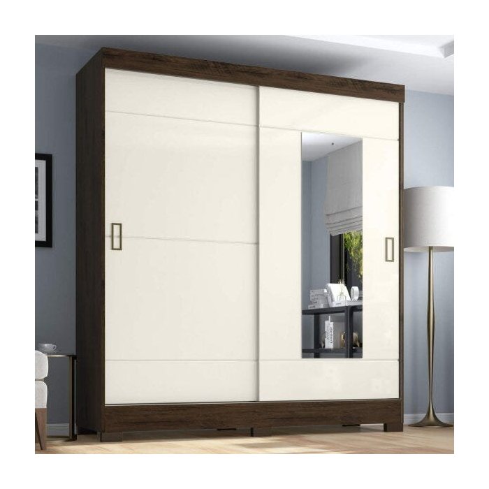 Guarda-Roupa Solteiro com Espelho 2 Portas de Correr 2 Gavetas Dallas Espresso Móveis Café/Off White