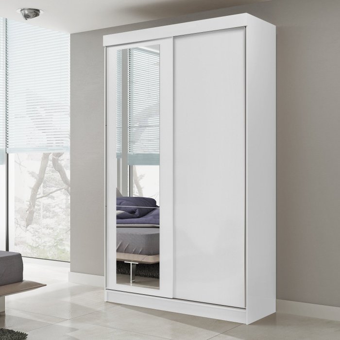Guarda Roupa Solteiro com Espelho 2 Portas de Correr 2 Gavetas Medellín Marafon Móveis Branco