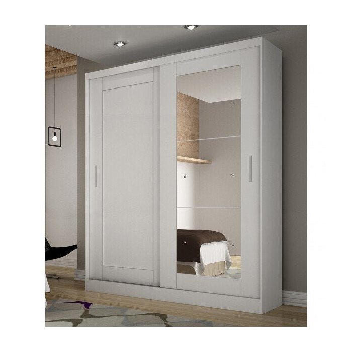 Guarda-Roupa Solteiro com Espelho 2 Portas de Correr Abaete Rufato Branco