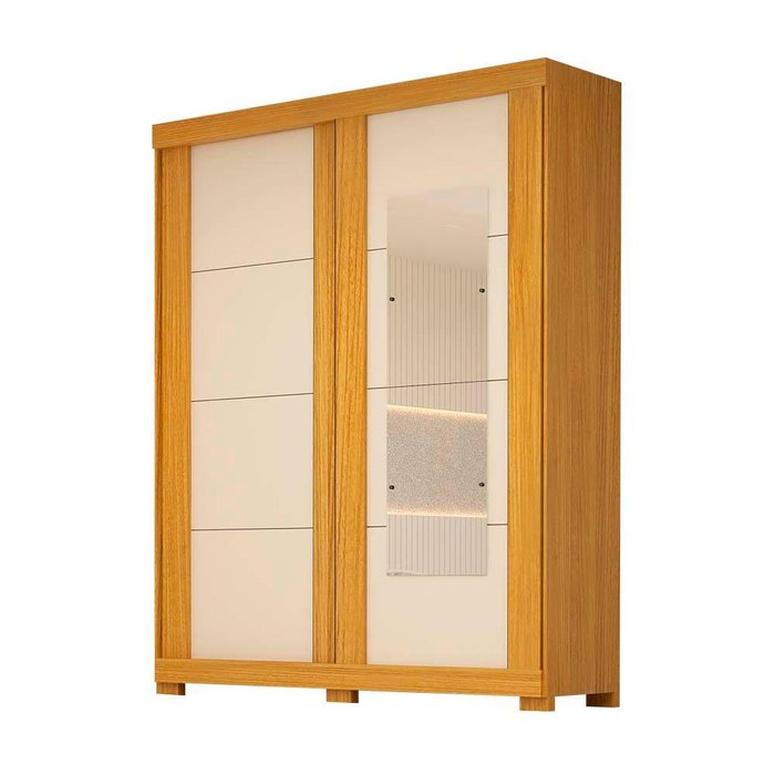 Guarda Roupa Solteiro com Espelho 2 Portas de Correr Helena ACP MÓVEIS Nature/Off White - 100% MDF