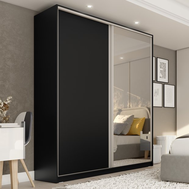 Guarda Roupa Solteiro com Espelho 2 Portas em BP Belluno Preto