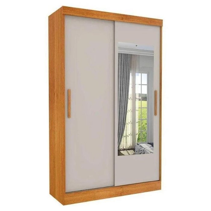 Guarda Roupa Solteiro Com Espelho 2 Portas Firenze Tcil Cinamomo/off