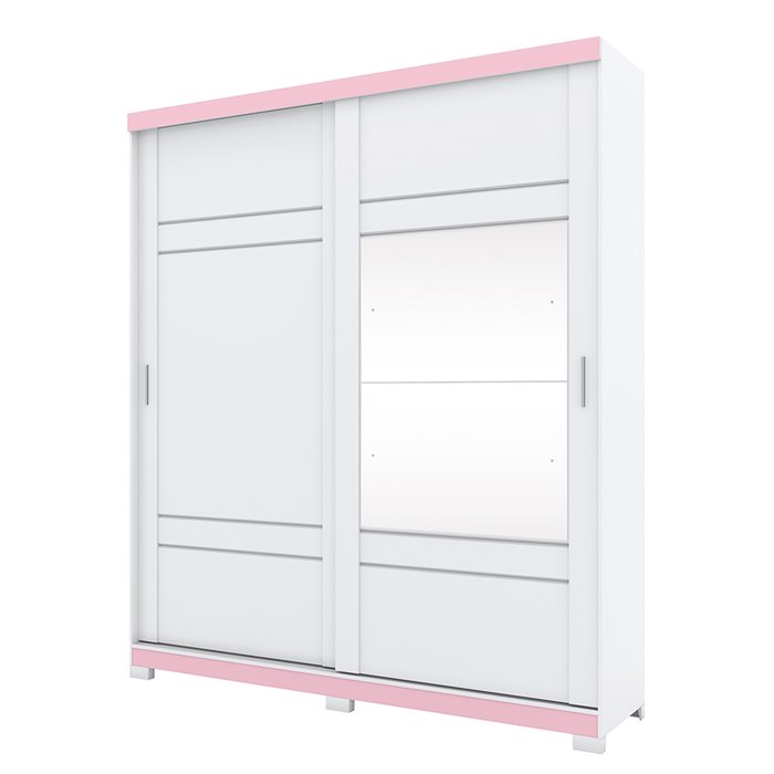 Guarda Roupa Solteiro Com Espelho 2 Portas H02 Veiga Flex Branco/Rosa Chá - Mpozenato