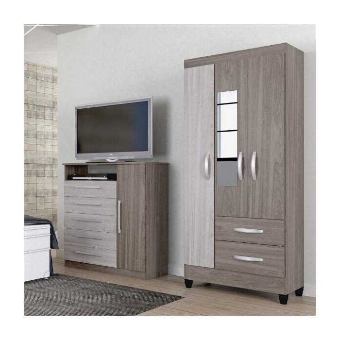 Guarda-Roupa Solteiro com Espelho 3 Portas 2 Gavetas Real Light Atualle Móveis