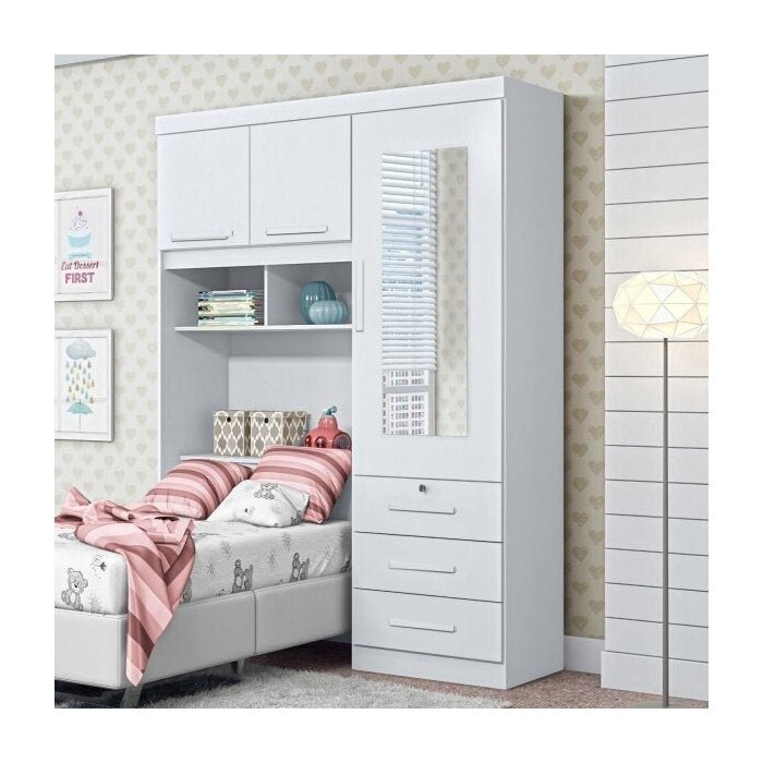Guarda-Roupa Solteiro com Espelho 3 Portas Duster Duster Albatroz Móveis Branco/Azul/Rosa/Preto