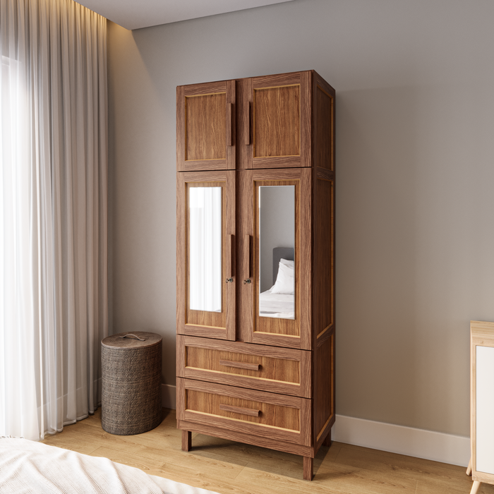 Guarda-roupa Solteiro com Espelho 4 Portas 2 Gavetas Teresina