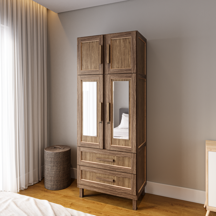 Guarda-roupa Solteiro com Espelho 4 Portas 2 Gavetas Teresina Imbuia Natural