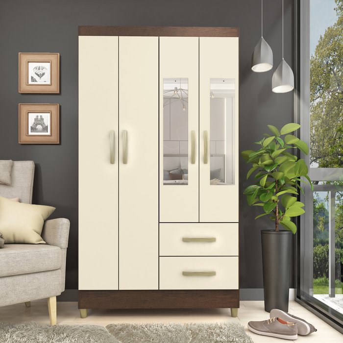 Guarda Roupa Solteiro com Espelho 4 Portas 2 Gavetas Veneza com Pés