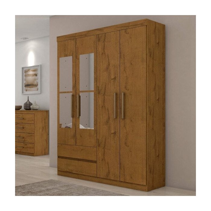 Guarda-Roupa Solteiro com Espelho 4 Portas 2 Gavetas Zeus Plus Lopas Rovere Soft