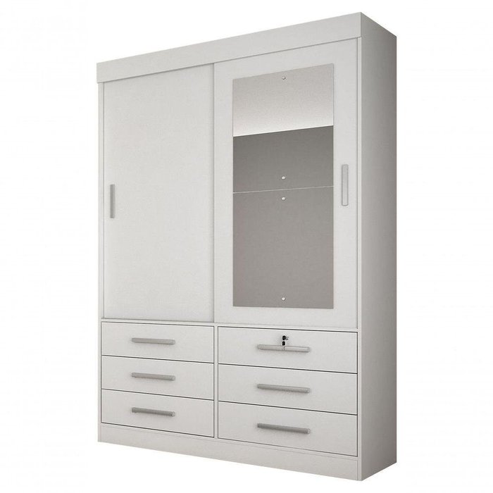Guarda Roupa Solteiro Com Espelho 6 Gavetas branco