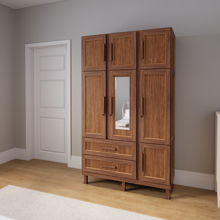Guarda-roupa Solteiro com Espelho 7 Portas 2 Gavetas Fortaleza Ypê