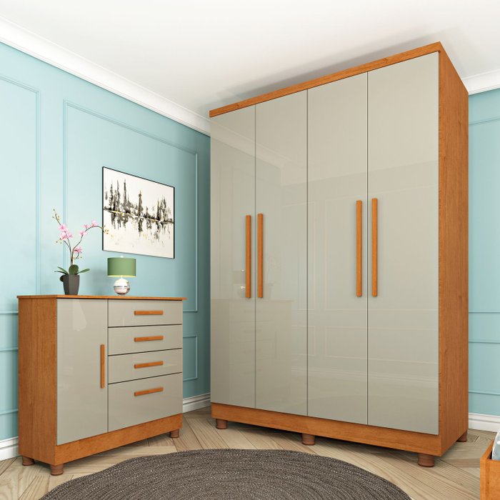 Seu quarto é seu santuário, o lugar onde você busca o máximo de conforto e reflete sobre seu dia. Para completar a decoração desse ambiente tão pessoal e essencial, apresentamos o Guarda Roupa Solteiro 4 Portas 2 Gavetas 133cm Amsterdam. Ele é a combinação perfeita de funcionalidade, elegância e um design que reflete seu estilo.