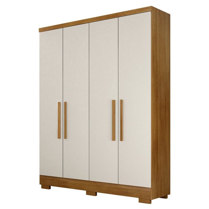 Guarda Roupa Solteiro com Pés 4 Portas 2 Gavetas - Milly-Cumaru/Fendi - Móveis Novo Horizonte