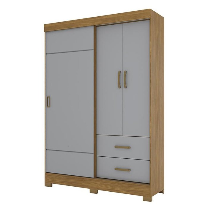 Guarda Roupa Solteiro Corba 3 Portas e 2 Gavetas Nature/Cinza - Móveis Briz