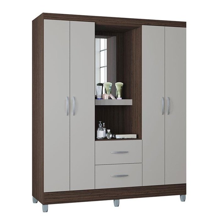 Guarda Roupa Solteiro Cordoba 4 Portas Chocolate Off White – Poquema