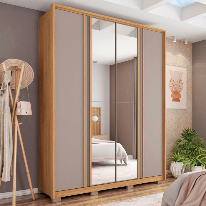 Guarda-roupa Solteiro Gladiador 4 Portas 3 Gavetas com Espelho Buriti/fendi - Caemmun