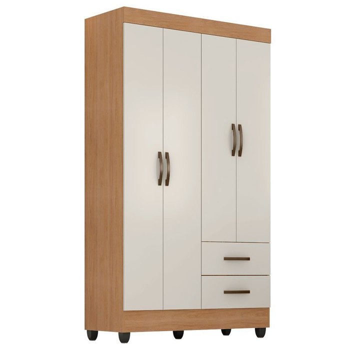 Guarda-roupa Solteiro Grande 4 Portas 2 Gavetas e 4 Prateleiras Lisa Mdp Nature/off White Nature/Off White