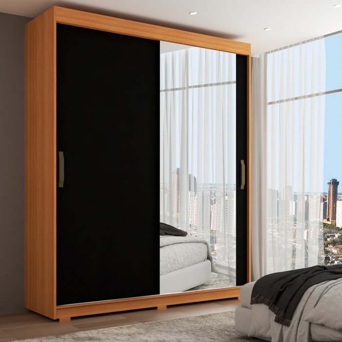 Guarda-roupa Solteiro La Paz 2 Portas 2 Gavetas com Espelho Naturale Tx/grafite - Panorama Móveis