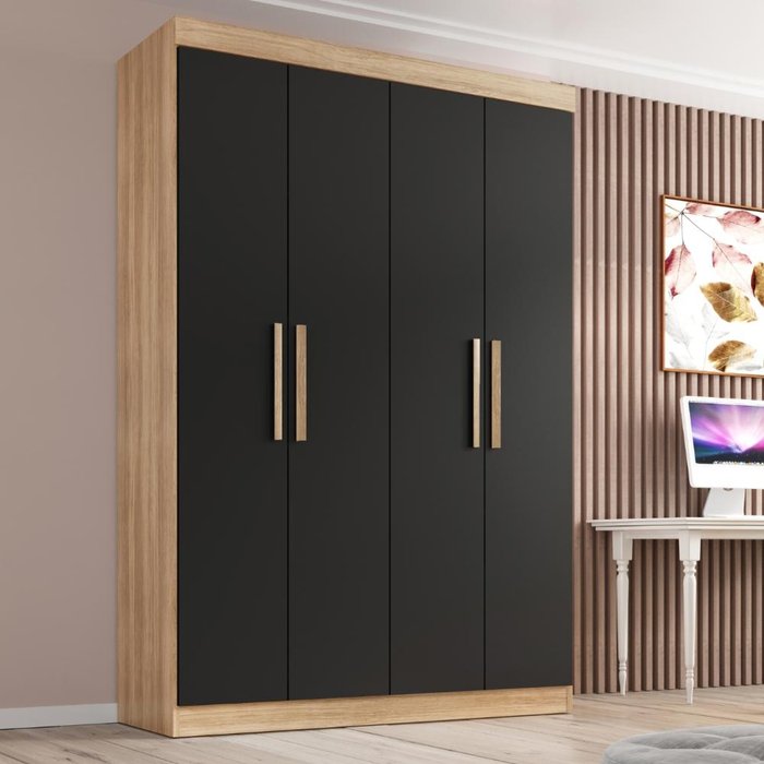 Guarda-Roupa Solteiro Lisboa 4 Portas 2 Gavetas Teka/Ônix