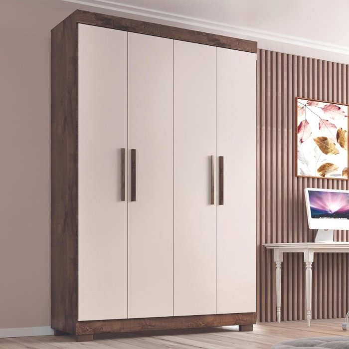 Guarda-Roupa Solteiro Lisboa 4 Portas 2 Gavetas com Pés Chocolate/Offwhite