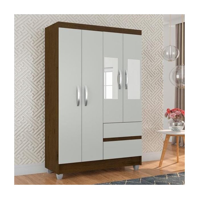 O Guarda-roupa Solteiro Lohaine c/ Espelho 4 Portas 2 Gavetas. Ele tem um bonito acabamento com Pintura Texturizada, muito resistentes que dão maior destaque à cor.