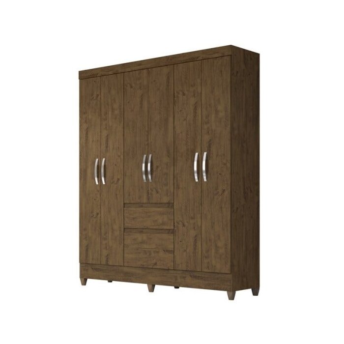 Guarda-Roupa Solteiro New Cuba 6 Portas Castanho Wood Moval