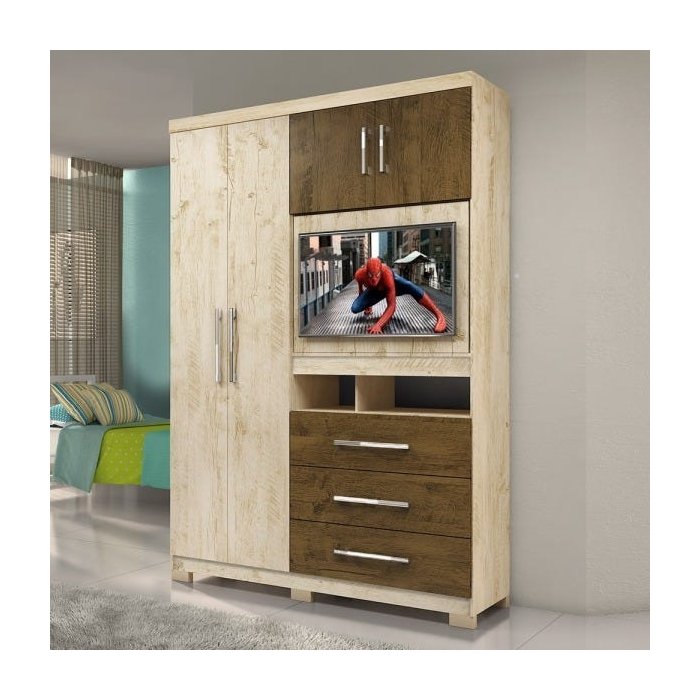 Guarda-Roupa Solteiro Com Painel Para TV de Até 32 Polegadas Viena