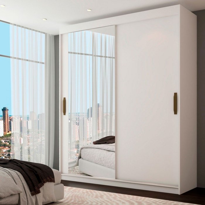 Guarda-roupa Solteiro Palhoça 2 Portas 2 Gavetas com Espelho Branco - Panorama Móveis