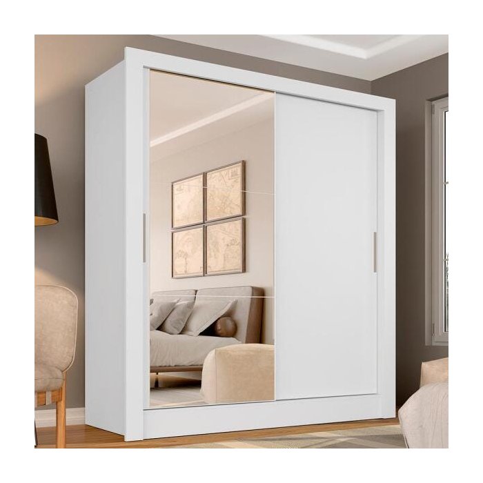Guarda-roupa Solteiro Paloma 2 Portas com Espelho Branco- Móveis Arapongas Branco