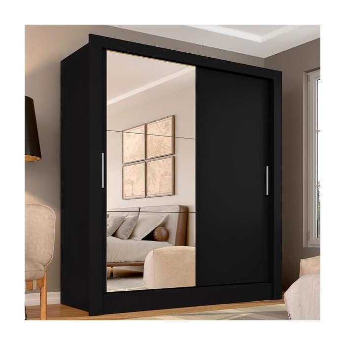 Guarda-roupa Solteiro Paloma 2 Portas com Espelho Preto Fosco M. Arapongas Preto Fosco