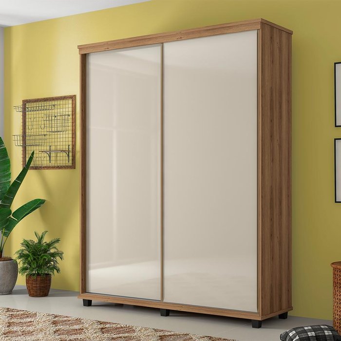 Guarda-Roupa Solteiro Porta de Correr Versatti Freijó Off-White Fabri Móveis Freijó/Off White