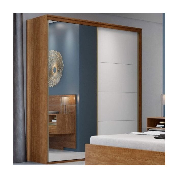 Guarda-Roupa Solteiro Porta Espelhada 2 Portas 178cm Eleganza Álamo