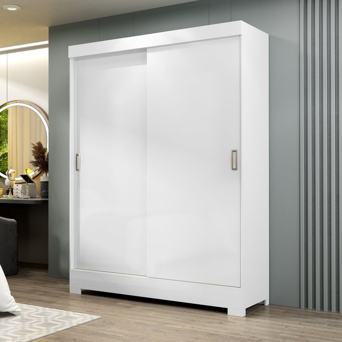 Guarda-roupa Solteiro Portas de Correr 2 Gavetas com Pés Gana Branco