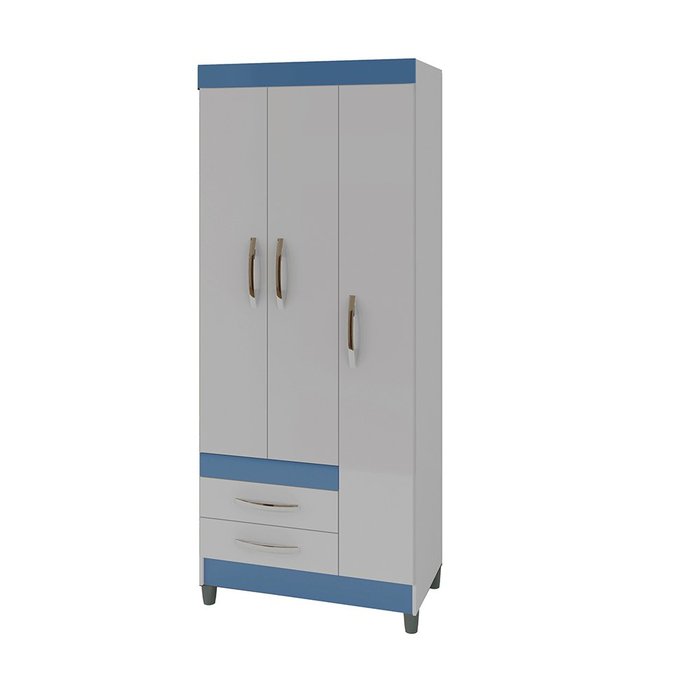 Guarda Roupa Solteiro Porto 3 Portas Branco/Azul