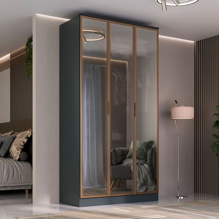 Guarda-roupa Solteiro Ravi 3 Portas Reflecta 2 Gavetas 100% Mdf Grafitto - Mambel Cinza