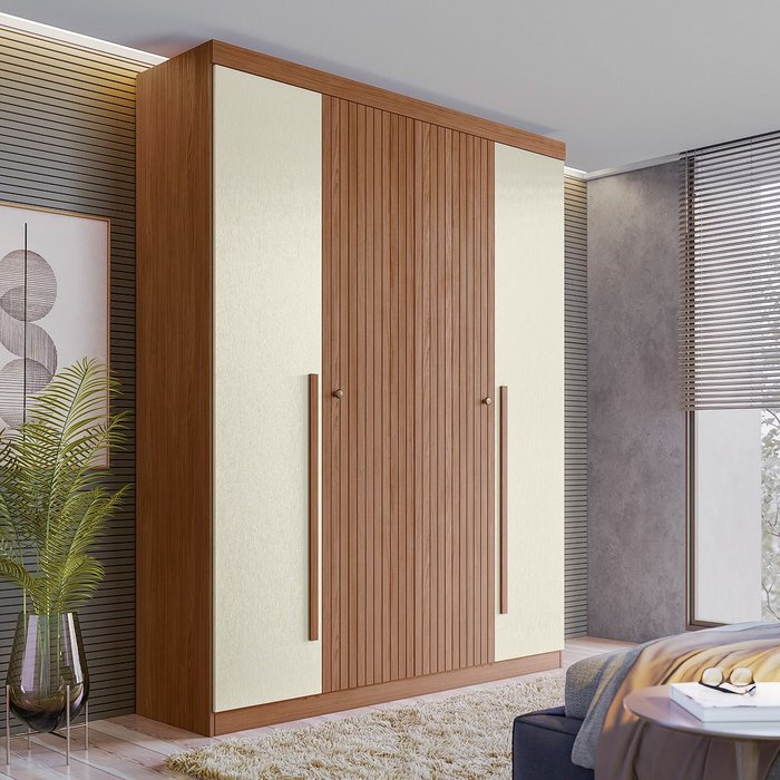 Guarda Roupa Solteiro Ripado 4 Portas 2 Gavetas Antony Jatoba/Areia