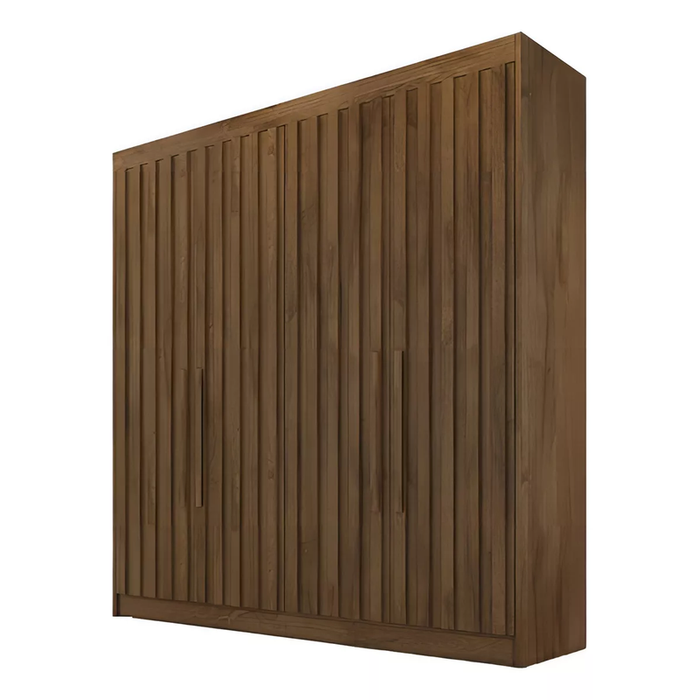 Guarda Roupa Solteiro Ripado 4 Portas 3 Gavetas - Potente-Braúna - Móveis Europa