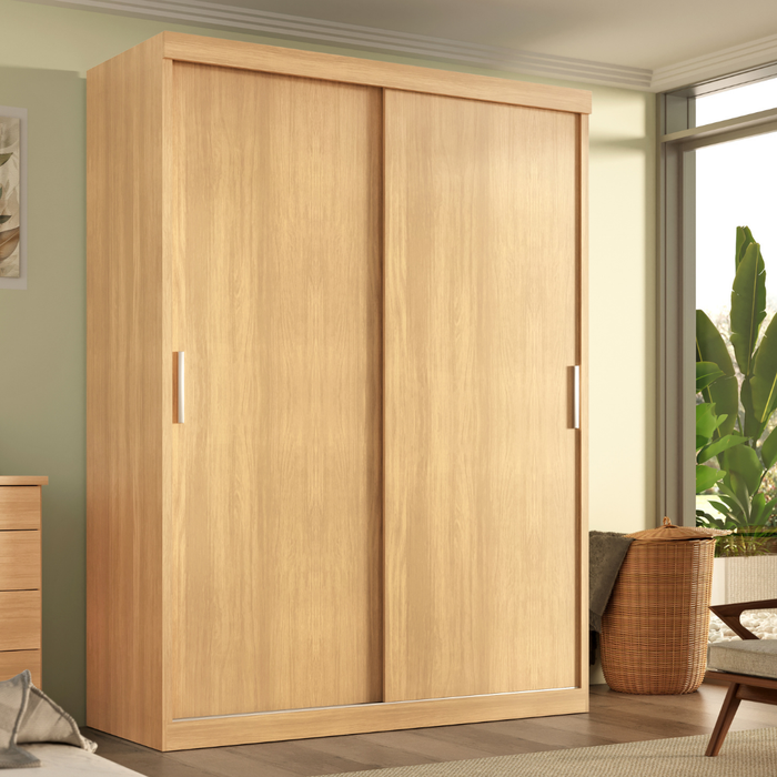 Com 2 portas de correr, ele economiza espaço e oferece fácil acesso aos seus pertences. Seu design moderno e bem estruturado permite uma organização eficiente com gavetas, prateleiras e cabideiro.
