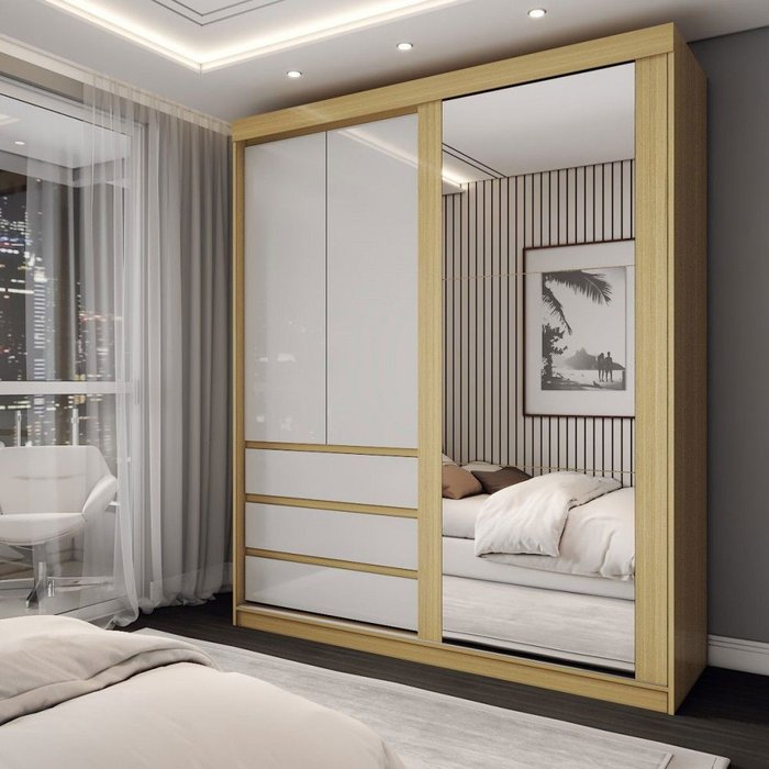 Descrição:O(a) Guarda-Roupa Solteiro Rosário 100% Mdf 3 Portas 3 Gavetas com Espelho Castanho/Off White - Loja é produzido em 100% MDF na escala de brilho Semi-Brilho, e possui um grau de dificuldade de montagem: Médio.Seu revestimento/acabamento é: Texturizada.Infelizmente a Loja não oferece serviço de montagem, deixamos essa informação bem clara em todas as nossas páginas de produto. Onde especificamos que os móveis chegarão desmontados, e que a montagem fica por conta do cliente.Como não oferecemos esse serviço não embutimos o mesmo no preço dos produtos, ou seja, maior economia para você! Todos os nossos móveis também acompanham o manual de montagem, e caso você queira, pode realizar a montagem você mesmo, sempre especificamos os graus de montagem dos produtos.Nos casos de grau baixo e médio, com pouco ou nenhum conhecimento, você mesmo pode efetuar a montagem, e fazer essa economia. Apenas nos graus de montagem alto, recomendamos a contratação de um montador com experiência, visto que são montagens mais complicadas. A montagem é feita com Parafusos, cavilhas e Minifix..Este móvel é indicado para que seja utilizado no(a) Quarto, dando um toque especial no cômodo de sua casa.Para que você mantenha seu produto sempre em ótimo estado, recomendamos que use apenas um pano seco ou levemente umedecido, sem o uso de quaisquer produtos abrasivos.A Loja garante aos clientes, 90 dias de garantia nos produtos, porém, recomendamos que entre em contato com o fornecedor/marca do produto, pois o mesmo(a), pode garantir uma data maior de garantia.Lembrando ainda que: quaisquer objetos decorativos que aparecem nas imagens, não acompanham o produto.Características:- Espessura da Estrutura: 9mm, 15mm- Possui Gavetas?: Sim- Quantidade de Gavetas: 3- Peso Suportado nas Gavetas (Kg): 3 Kg- Material das Corrediças: Metálica- Tipo da Corrediça: Telescópica- Possui Portas?: Sim- Quantidade de Portas: 3- Material da Porta: MDF- Espessura da Porta: 9 mm- Tipo de Porta: Portas de Bater e Portas de Correr- Material das Dobradiças: Aço- Material do Trilho: Alumínio- Possui Vidro?: Não- Possui Espelho?: Sim- Altura do Espelho: 208 Cm- Largura do Espelho: 57 Cm- Espessura do Espelho: 0,3 Cm- Possui Prateleiras?: Sim- Quantidade de Prateleiras: 7- Peso Suportado nas Prateleiras:: 3 Kg- Possui Puxadores?: Sim- Material do Puxador: Abertura no Móvel- Possui Ripamento?: Não- Linha ou Coleção: Rosário- Montagem Invertida?: Não Pode ser Montado Invertido- É frágil?: Não- Possui Nicho?: Não- Material da Estrutura: 100% MDF- Escala de Brilho: Semi-Brilho- Possui Rodízios?: Não- Possui Sapatas?: Sim- Possui Pés?: Não- Quantidade de Pés/Sapatas: 4- Acompanha: Guarda-Roupa, Kit Ferragens e Manual de Montagem- Acompanha Manual de Montagem: Sim- Como os Móveis Chegarão na Minha Casa: Desmontado em caixas, acompanhado de todas as peças, ferragens e manuais para montagem.- Grau de Dificuldade da Montagem: Médio- Necessita de Montagem: Sim- Sistema de Montagem: Parafusos, cavilhas e Minifix.- Garantia (dias): 90- Indicação de Uso: Quarto- Observação: Objetos decorativos que aparecem nas imagens, não acompanham o produto.- Recomendação de Manutenção: Utilizar pano levemente umedecido, seguido de pano seco. Não utilizar quaisquer produtos abrasivos.- Revestimento /Acabamento: Texturizada- Material do Cabideiro: Alumínio- Modelo: Solteiro- Peso Suportado no Cabideiro (Kg): 6- Quantidade de Cabideiros: 1- Tipo de Guarda-Roupa/Closet: ConvencionalDimensões:- Altura: 232,50 cm- Largura: 160,00 cm- Profundidade: 55,90 cm- Peso: 136,610 kg
