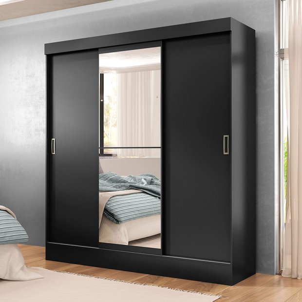 Descrição:O(a) Guarda-Roupa Solteiro San Marino 3 Portas 2 Gavetas com Espelho Flex Preto/Off White - Maxel é produzido em MDP na escala de brilho Brilhante, e possui um grau de dificuldade de montagem: Médio.Seu revestimento/acabamento é: Pintura UV.Infelizmente a Loja não oferece serviço de montagem, deixamos essa informação bem clara em todas as nossas páginas de produto. Onde especificamos que os móveis chegarão desmontados, e que a montagem fica por conta do cliente.Como não oferecemos esse serviço não embutimos o mesmo no preço dos produtos, ou seja, maior economia para você! Todos os nossos móveis também acompanham o manual de montagem, e caso você queira, pode realizar a montagem você mesmo, sempre especificamos os graus de montagem dos produtos.Nos casos de grau baixo e médio, com pouco ou nenhum conhecimento, você mesmo pode efetuar a montagem, e fazer essa economia. Apenas nos graus de montagem alto, recomendamos a contratação de um montador com experiência, visto que são montagens mais complicadas. A montagem é feita com Parafusos, cavilhas e Minifix..Este móvel é indicado para que seja utilizado no(a) Quarto, dando um toque especial no cômodo de sua casa.Para que você mantenha seu produto sempre em ótimo estado, recomendamos que use apenas um pano seco ou levemente umedecido, sem o uso de quaisquer produtos abrasivos.A Loja garante aos clientes, 90 dias de garantia nos produtos, porém, recomendamos que entre em contato com o fornecedor/marca do produto, pois o mesmo(a), pode garantir uma garantia maior..Lembrando ainda que: quaisquer objetos decorativos que aparecem nas imagens, não acompanham o produto.Características:- Acompanha Manual de Montagem: Sim- Possui Pés?: Não- Como os Móveis Chegarão na Minha Casa: Desmontado em caixas, acompanhado de todas as peças, ferragens e manuais para montagem.- É frágil?: Sim- Possui Ripamento?: Não- Montagem Invertida?: Pode ser Montado de Ambos os Lados- Possui Nicho?: Não- Quantidade de Cabideiros: 3- Tipo de Guarda-Roupa/Closet: Convencional- Observação: Objetos decorativos que aparecem nas imagens, não acompanham o produto.- Necessita de Montagem: Sim- Sistema de Montagem: Parafusos, cavilhas e Minifix.- Indicação de Uso: Quarto- Acompanha: Um guarda roupa e um manual de montagem- Modelo: Casal- Possui Rodízios?: Não- Garantia (dias): 90- Grau de Dificuldade da Montagem: Médio- Recomendação de Manutenção: Utilizar pano levemente umedecido, seguido de pano seco. Não utilizar quaisquer produtos abrasivos.- Peso Suportado nas Gavetas (Kg): 3 Kg- Possui Vidro?: Não- Tipo de Porta: Portas de Correr- Possui Espelho?: Sim- Quantidade de Portas: 3- Material do Puxador: Plástico- Altura do Espelho: 122 Cm- Largura do Espelho: 53 Cm- Espessura da Estrutura: 12mm e 15mm- Possui Gavetas?: Sim- Quantidade de Gavetas: 2- Material da Porta: MDP- Espessura da Porta: 15 mm- Possui Portas?: Sim- Material do Trilho: Metálica- Possui Puxadores?: Sim- Material das Corrediças: Metálica- Tipo da Corrediça: Telescópica- Peso Suportado nas Prateleiras:: 6 Kg- Possui Prateleiras?: Sim- Espessura do Espelho: 0,3 Cm- Revestimento /Acabamento: Pintura UV- Linha ou Coleção: San Marino- Material da Estrutura: MDP- Quantidade de Prateleiras: 4- Escala de Brilho: BrilhanteDimensões:- Altura: 200,00 cm- Largura: 157,20 cm- Profundidade: 47,00 cm- Peso: 94,850 kg