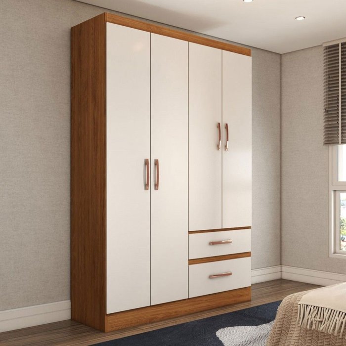 Guarda-roupa Solteiro São Francisco 4 Portas 2 Gavetas Off White/nogueira - Panorama Móveis